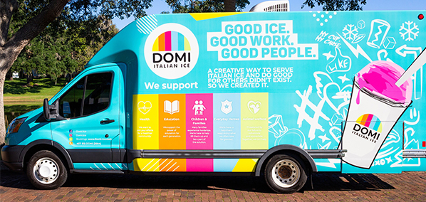 DOMI Italian Ice is a dessert favorite that inspires people to have fun, love and do some good in their community. It's all about delicious Italian Ice bringing people together to help communities thrive.To accomplish this, we focus on the three things that matter most.